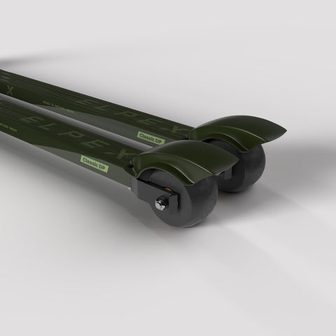 Nyhet för 2025! För den som vill staka sig fram längs vägarna! En något längre hjulbas bidrar till bättre skidkänsla och riktningsstabilitet. Bredare hjul bak, smalare hjul fram gör den lätthanterlig trots den extra längden. Denna modell levereras både med och utan backspärrar.
